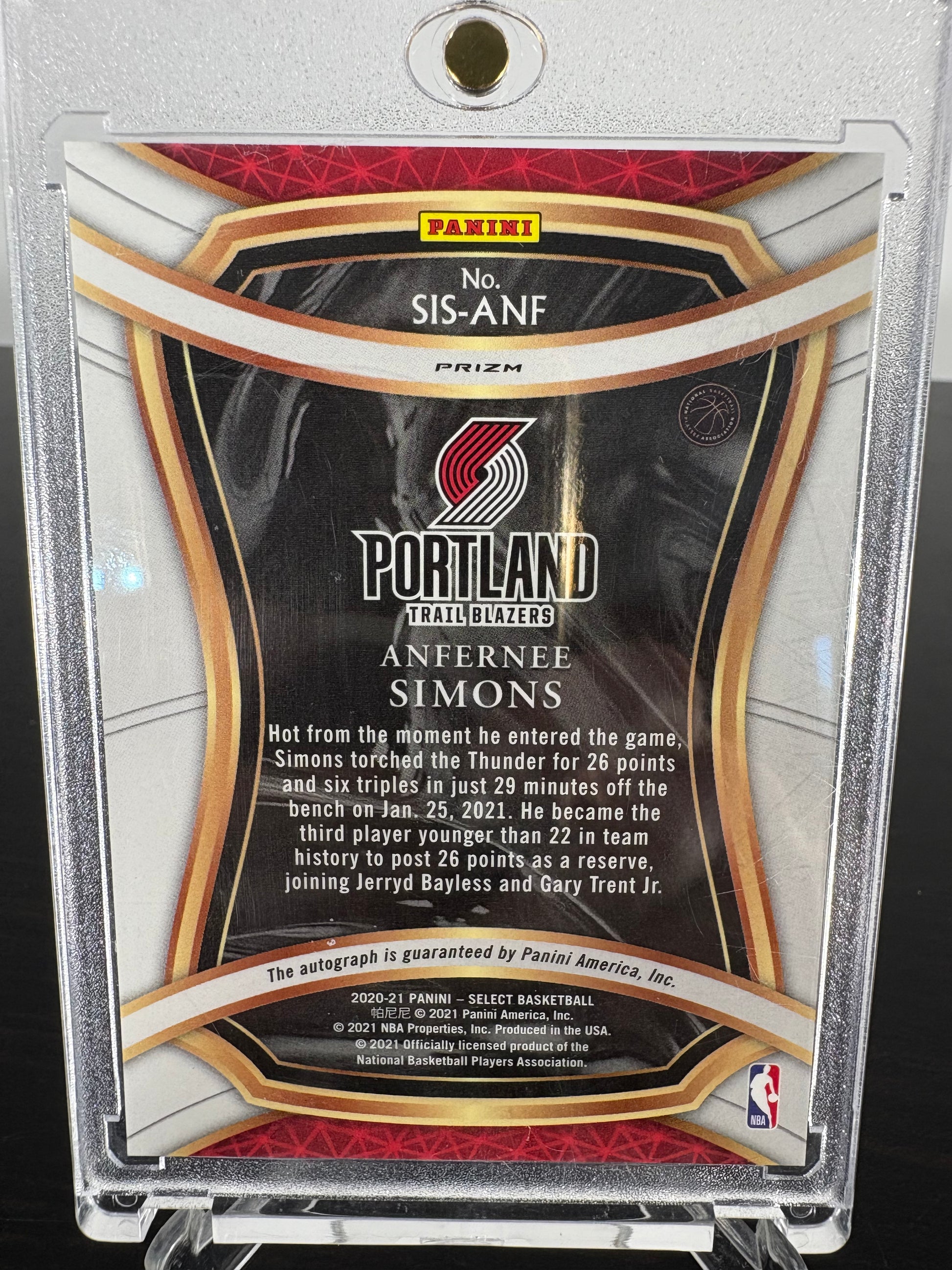 2020-21 Panini Select Anfernee Simmons Auto