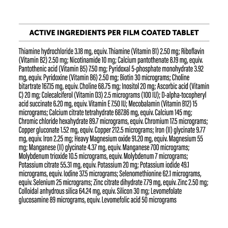 - Vitamin B5, Vitamin B6, Biotin, Choline, Calcium, Chromium, Copper, Magnesium, Manganese, Molybdenum and silicon maintain and support general health and wellbeing.